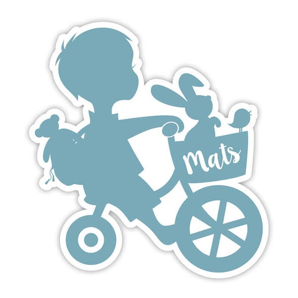 Dit geboortebord toont een lieve silhouette van een jongen op een fietsje, met een konijntje en een vogeltje in het mandje. Het vrolijke ontwerp met silhouette stijl maakt dit bord perfect als geboorteaankondiging in de tuin, op het balkon of op het raam. De silhouette uitstraling zorgt voor een speels en tijdloos effect dat direct in het oog springt.