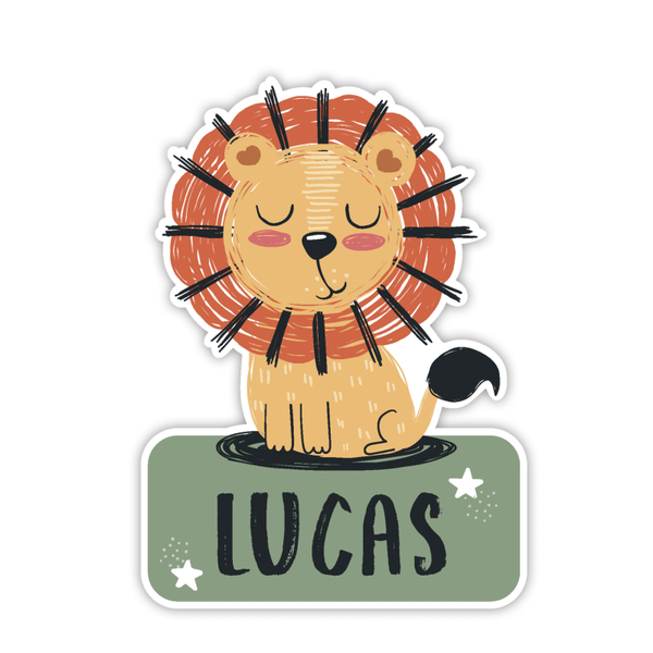 Een stoer geboortebord met een lief leeuwtje dat rustig zit met gesloten oogjes, op een naambordje van de baby met sterretjes. De handgetekende stijl en warme kleuren geven het ontwerp een vrolijke, speelse uitstraling. Perfect om de geboorte van jullie zoon aan te kondigen in de tuin of bij het raam.