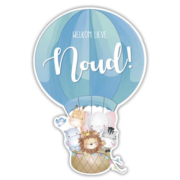 Geboortebord blauwe luchtballon met dieren | Jongen