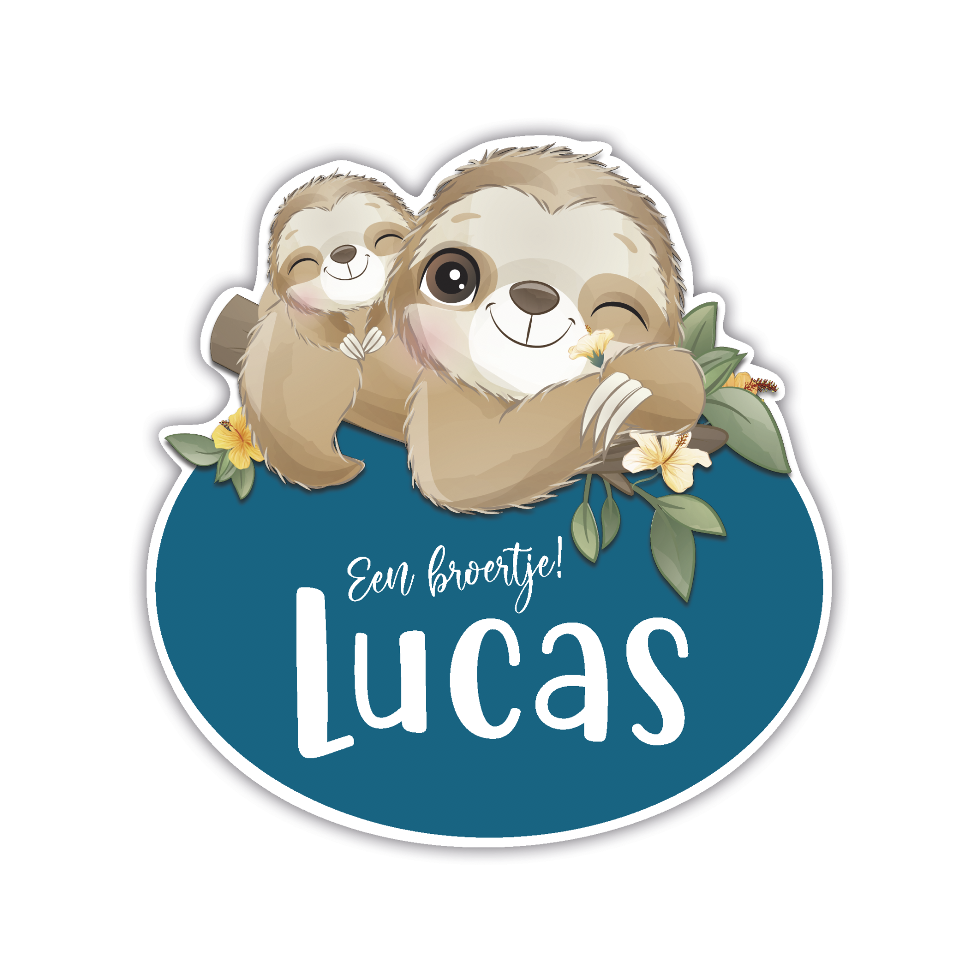 Een lief geboortebord met twee knuffelende luiaards: een trotse grote broer of zus met het pasgeboren broertje. De zachte kleuren, lieve uitstraling en speelse details maken dit bord perfect voor gezinnen die willen laten zien dat er een klein broertje is geboren. Geschikt voor tuin of raam.
